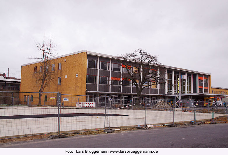 Das Bahnhofsgebäude Hildesheim Hbf gleicht in seiner Schlichtheit und dem Stil der 1960er Jahre mehr einer Sparkassenfiliale als einem Bahnhofsgebäude, hier ist der Bahnhofsvorplatz in der Umbauphase. Digi Foto: IMGP9041.JPG Digi Fotos 0246 (D15/D3/D2014) Foto: Lars Brüggemann |