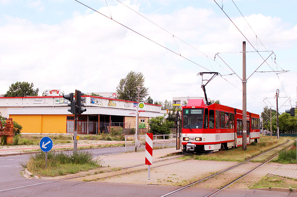 Das obere Foto zeigt den Cottbusverkehr Wagen 148 kurz vor der Endhaltestelle Sachsendorf der LInie 4. Es handelt sich bei dem Straßenbahnwagen um einen Tatra-Gelenktriebwagen vom Typ KTNF6 mit dem Baujahr 1988. Erst durch den Einbau von dem Niederflur-Mittelteil wurde er zu einem KTNF6, vorher war er ein KT4D, der Umbau erfolgte 1997. Links im Bild eine für die DDR so typische ehemalige Kaufhalle, ein klassischer Supermarkt, nun steht das Gebäude leer. Digitalfoto: IMG_4100.JPG Digi Fotos: 0273 (D21/D6/D2016) Foto: Lars Brüggemann Wer ist schon Fehlerfrei? Mir unterlaufen hier auf meiner Webseite leider hin und wieder Fehler. Hin und wieder bekomme ich freundliche Korrekturhinweise. Sollten Sie hier einen Fehler gefunden haben und sich vor Ort oder überhaupt gut auskennen? Schreiben Sie mir gerne Ihre Korrekturen. Email an Lars Brüggemann: mail@larsbrueggemann.de zurück zur: Startseite |