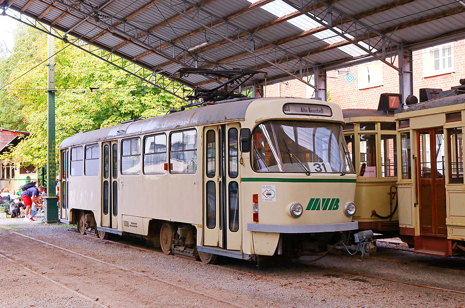 Im Straßenbahnmuseum in Wehmingen bei Hannover steht der ehemalige Magdeburger MVB 1008 Tatra-Wagen mit dem Baujahr 1968. Digi Foto IMG_4532.JPG Digi Fotos 0372, FP10 (D8/D9/+#24) Foto: Lars Brüggemann |