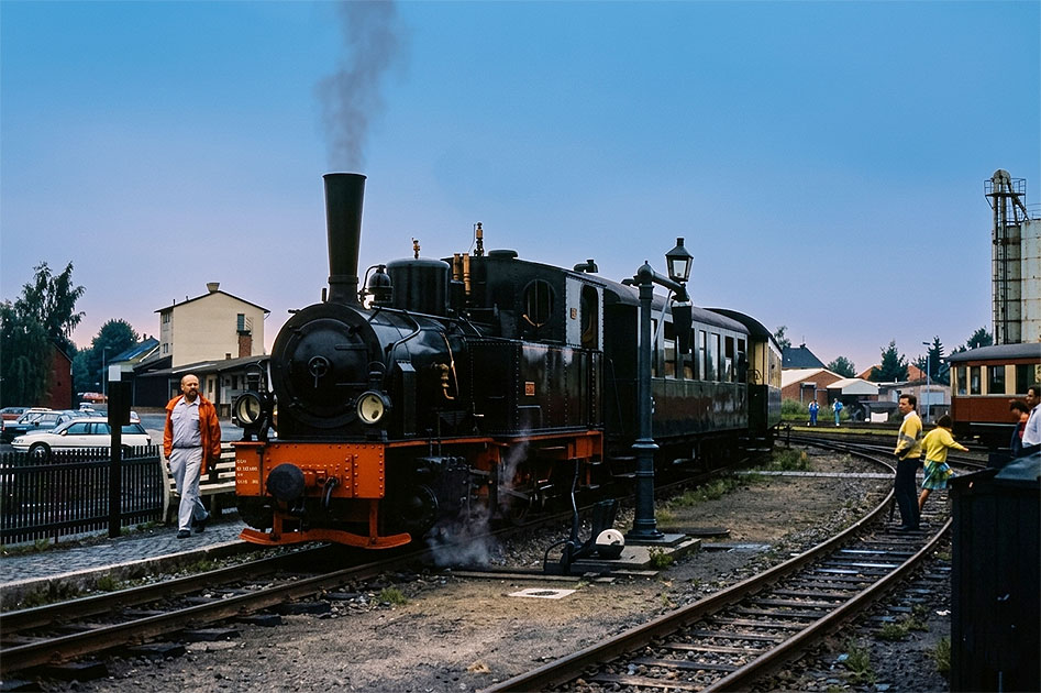 Die Lok Hoya vom DEV im Bahnhof Heiligenberg. Die Lok läuft hier am Zugschluss von einem Zug nach Bruchhausen-Vilsen. Die Dampflok Hoya wurde 1899 von Hanomag (Hannoversche Maschinenbau AG) mit der Fabriknummer 3341 an die Kleinbahn Hoya - Syke - Asendorf geliefert. Digi Foto: IMGP2677.JPG Digi Fotos: 0215 (D6/D8/+#11) Foto: Lars Brüggemann Interner Vermerk: Dieses Foto ist noch unter einem anderen Dateinamen online. Diese Seite ist ein Teil einer Online-Foto-Sammlung ähnlich einem Bildband, Sie können sich hier von Seite zu Seite durchklicken. Vielleicht suchen Sie aber Fotos für eine Heimatchronik, ein Fachbuch oder einen Fachartikel? Schreiben Sie mir! Email an Lars Brüggemann: mail@larsbrueggemann.de zurück zur: Startseite |