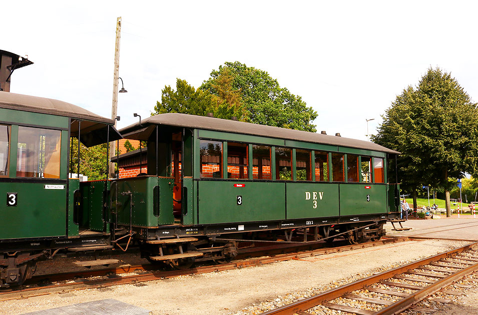 Die Wagen vom DEV werden häufig wenig beachtet doch was wäre diese Museumsbahn ohne ihre Wagen? Hinter dem Bahnhof Heiligenberg befinden sich einige Abstellgleise und eine Fahrzeughalle. Hier steht quasi die Fahrzeugreserve vom DEV und die DEV-Fahrzeuge die mal aufgearbeitet werden müssten, wenn sich dafür denn aktive Mitglieder finden, am besten zusätzliche und neue. Auf dem Foto der DEV Wagen 5. der Wagen 5 wurde 1898 von Buschbaum & Holland an die Steinhuder-Meer-Bahn geliefert und bekam auch dort ursprünglich die Nummer 5. 1957 ging der Wagen zur Kleinbahn Emden-Pewsum-Greetsiel. 1963 ging der Wagen dann zur Kreisbahn Aurich. Im Jahr 1966 wurde der Wagen Museumswagen und ging dann an den DEV der damals aber noch DKV hiess. Digi Foto: IMG_7059.JPG Digi Fotos: 0347 (D7/D8/#22) Foto: Lars Brüggemann |
