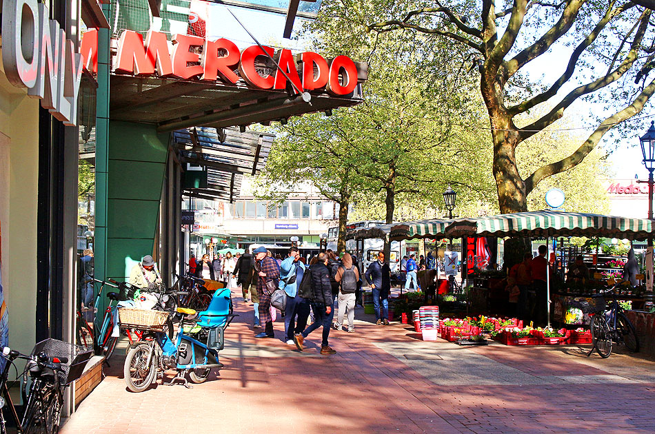 Auch ein Tipp für Touristen in Hamburg: Das Mercado ist ein großes beliebtes Einkaufszentrum im Herzen von Ottensen und Altona. Es liegt fast direkt am Bahnhof Hamburg-Altona und ist so mit der Fernbahn, der S-Bahn und vielen Buslinien zu erreichen. Für das Mercado wurde hier zuvor ein Hertie-Kaufhaus abgerissen um dieses neuzeitliche Einkaufszentrum zu bauen. Wer kann sich denn noch an Hertie, den Kaufhof oder gar Karstadt in Altona erinnern? Alles Geschichte. Im Mercado gibt es neben vielen kleinen und großen Geschäften auch viele feste Marktstände, Restaurants und Imbisse. Und auch sonst ist Ottensen ein lebendiger und sehenswerter Stadtteil. In Ottensen findet man viele Restaurants, Kneipen, Läden und kleinere Sehenswürdigkeiten. Digi Foto: IMG_3463.JPG Digi Fotos: 0379, FP10 (D25/D4/#+25) Foto: Lars Brüggemann Diese Seite ist ein Teil einer Online-Foto-Sammlung ähnlich einem Bildband, Sie können sich hier von Baureihe zu Baureihe durchklicken. Vielleicht suchen Sie aber Fotos für eine Heimatchronik, ein Fachbuch oder einen Fachartikel? Schreiben Sie mir! Email an Lars Brüggemann: mail@larsbrueggemann.de zurück zur: Startseite |