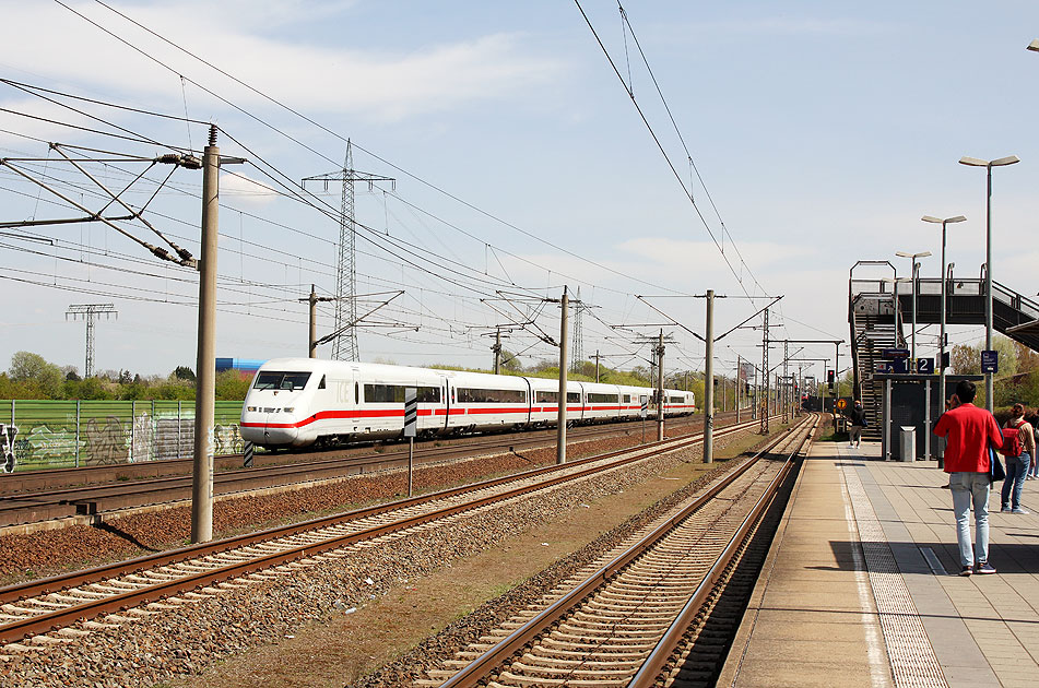 Am Bahnhof Wustermark rauscht ein ICE-Schnellzug vom Typ ICE 2 vorbei. An der Spitze der Steuerwagen mit dem Namen: "Rheinsberg" 808 001-2. Der Zug kommt aus Berlin und fährt in Richtung Hannover. Rechts am Bildrand der Bahnsteig vom Bahnsteing Wustermark. Digi Foto: IMG_2649.JPG Digi Fotos: 0343 (D29/D4/xylit22) Foto: Lars Brüggemann Interner Vermerk: Dieses Foto ist noch unter einem anderen Dateinamen online. |