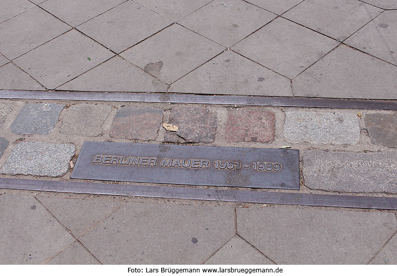 Der Verlauf der Berliner Mauer wird durch Markierungen wie hier an der Bernauer Straße gezeigt um sehen zu können wo die Berliner Mauer verlaufen ist. Digi Foto: IMG_0007.JPG Digi Fotos: 0274 (D18/D7/D2016) Foto: Lars Brüggemann |