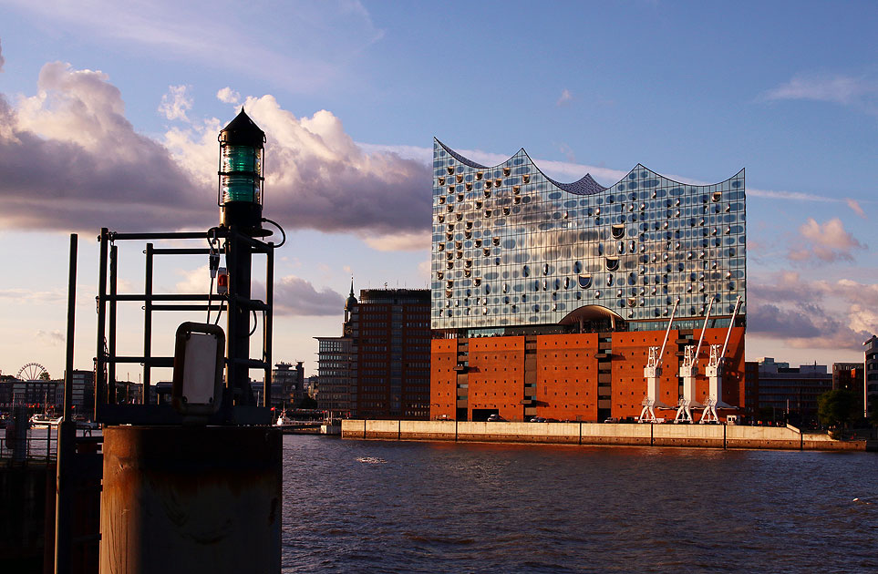 Die Elbphilharmonie in Hamburg in dem Neubaustadtteil Hafencity. In der Bildmitte lugt noch der Michel hervor. Digi Foto: IMG_7254.JPG Digi Fotos: 0335 (D27/D8/#+21) Foto: Lars Brüggemann |