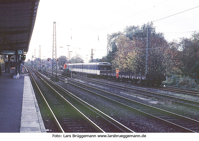 Es war schon dunkel, an digitele Fotografie und die praktische Einstellung der ASA-Zahl in der Digitalkamera war hier noch nicht zu denken. Bestenfalls ein 400 ASA Diafilm stand mir hier zur Verfügung und leider nur eine offene Blende wie Blende 2,8. Die Zeit war auch knapp denn ich war hier nur für das Foto schnell ausgestiegen und wollte ja auch wieder mit. So entstehen dann Zeitdokumente. Am 31. März 2000 fuhren die 471 040 und 016 am letzten Einsatztag der Baureihe 471 auf der S 11, als ebenso letzter 471 von Blankenese nach Ohlsdorf hier in den Bahnhof Hamburg-Bahrenfeld ein. Wie bereits der Zweite Weltkrieg in Europa tobte wurde der ET 171 040 im Jahr 1943 im schlesischen Breslau bei LHB gebaut und am 8. April 1943 nach Hamburg geliefert. 1985 wurde er im Aw Stuttgart Bad Cannstatt modernisiert und erhielt zum Beispiel neue Fenster woran man diese besonders gut erkannte. So bekamen die Züge auch den Namen Cannstätter, von den Cannstättern ist kein Zug erhalten geblieben. Dia U 23.001-1 FP2 Foto: Lars Brüggemann Interner Vermerk: Dieses Foto ist noch unter einem anderen Dateinamen online. Diese Seite ist ein Teil einer Online-Foto-Sammlung ähnlich einem Bildband, Sie können sich hier von Seite zu Seite durchklicken. Vielleicht suchen Sie aber Fotos für eine Heimatchronik, ein Fachbuch oder einen Fachartikel? Schreiben Sie mir! Email an Lars Brüggemann: mail@larsbrueggemann.de Hierbei handelt es sich um ein journalistisches Angebot, es richtet sich nicht an bildersammelnde Eisenbahnfreunde zur kostenlosen Zusendung (für "private Zwecke"). Ebenso bitte ich um Verständnis das ich als Journalist keine kostenlosen Fotos für Veröffentlichungen anbiete (selbst bei so verheißungsvollen Angeboten wie: "selbstverständlich schreiben wir auch Ihren Namen dazu"). zurück zur: Startseite |