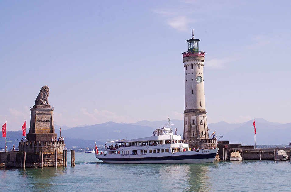 Das Schiff Zürich von der Schweizerischen Bodensee-Schiffahrt kommt in den Hafen von Lindau eingefahren. Die Zürich wurde 1933 von den Schweizerischen Bundesbahnen in Dienst gestellt. Dieses Schiff ist nach dem Kanton Zürich benannt. Digi Foto: IMGP8060.JPG Digi Fotos: 0239 (D6/D8/bodensee13) Foto: Lars Brüggemann |